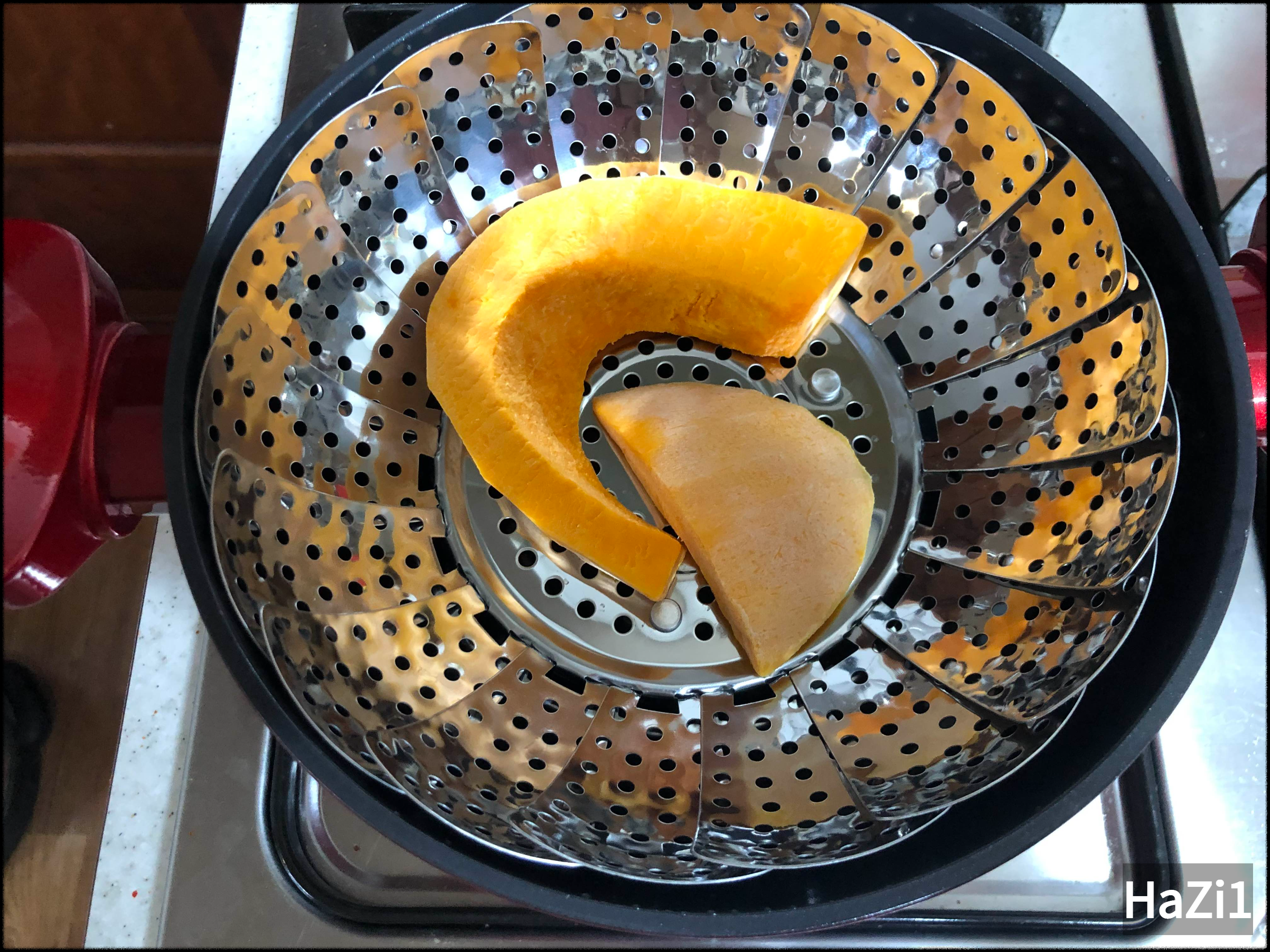 우선 단 호박은 씨를 제거하고 손질 후 찜기에